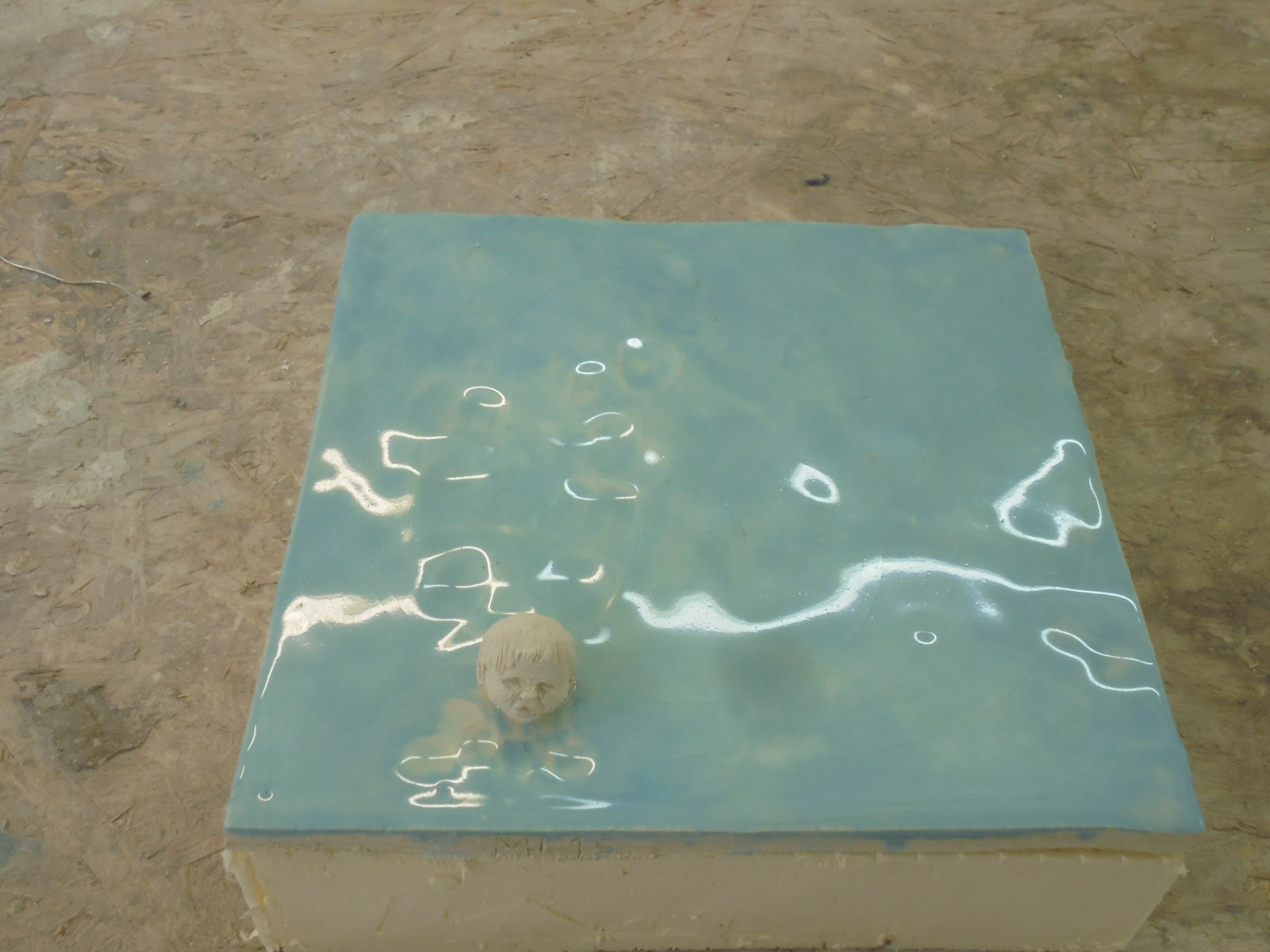 Baba, sculpture of a baby. ca 20 x 20 cm. Scagliola